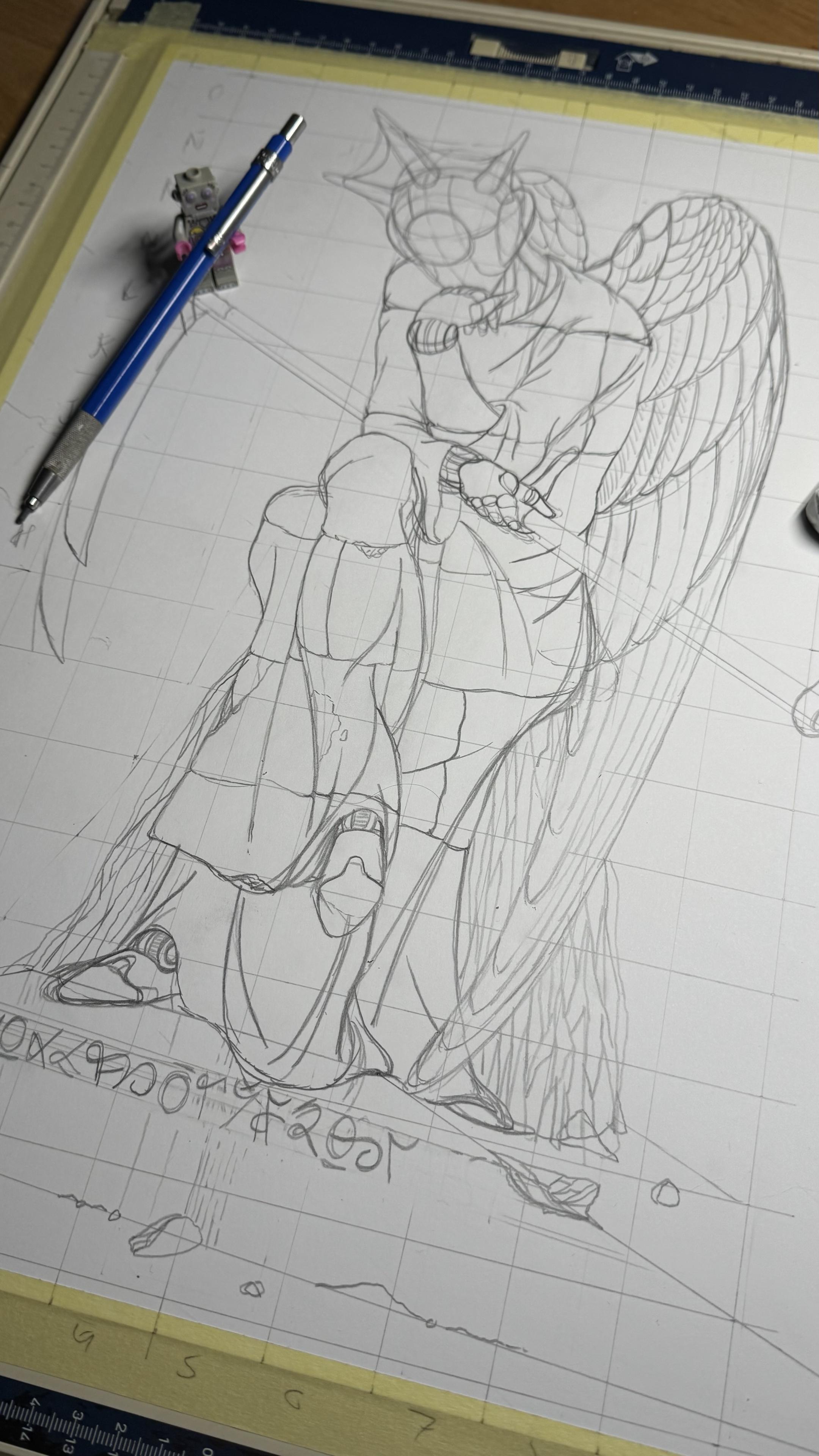 Do I hate myself? I do hate myself (old adage here), but I think that I will enjoy, again, inking a lot of never ending texture details in this #illustration. So far I’m liking how this is going. The scythe adds a lot of meaning. Now I need to think about the background to give the statue a great scale. And I need to add much more debris, ruin and melancholic decay. #drawing #pencil #sketch #mastoart #wip #workinprogress #handdrawn #angel #statue #mastodonart